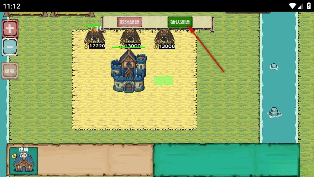 点击建筑后,在上方箭头位置确认建造,就能启动建筑的生成流程。