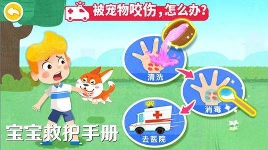 《宝宝救护手册》是一款专为学龄前儿童设计的趣味早教游戏,它有着精美可爱的界面,能让宝宝在游戏中模拟学习各种救护小知识、营救技巧以及户外生存方法,通过有趣的游戏方式提升孩子们的自我保护意识!快来体验吧!