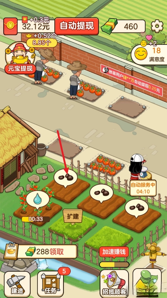 进入游戏后,找到并点击空地,种植作物