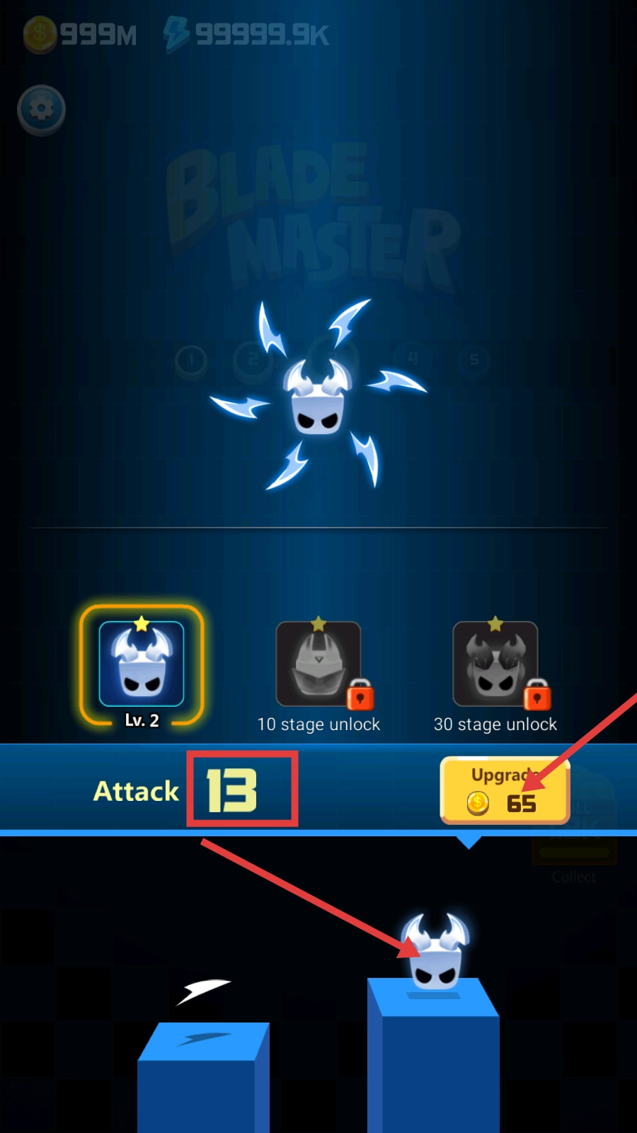 在《Blade-Master》游戏里,花费65枚金币将攻击力升级到13点,能够增强角色的战斗能力,为接下来的关卡挑战打下坚实的基础。