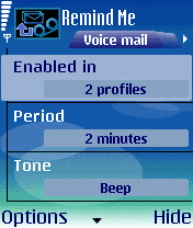一款提醒程序,可对未接来电,语音信息,或未读短信息进行声音提示。 支持提示音选择和音量调节,同时还可以选择当电话处于某个模式时自动启动程序。同时如果您正在讲电话,提示音是不会响起的。