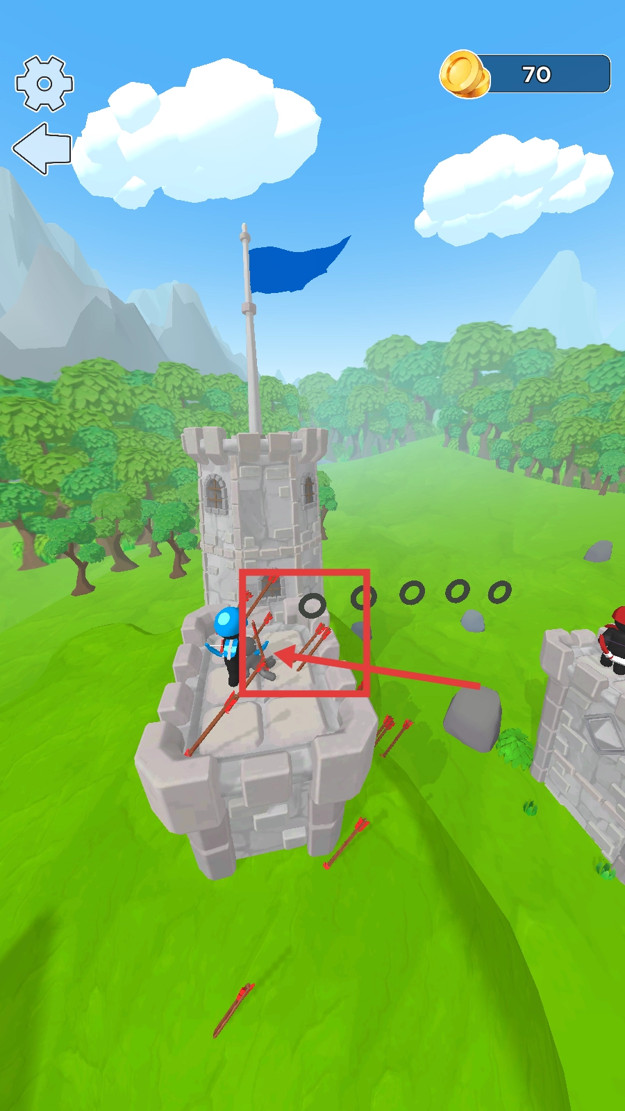 用箭矢射击来消灭敌方城堡里的人员,通过一次次射击把敌人都清除掉,一步步削弱敌方的防御力量。