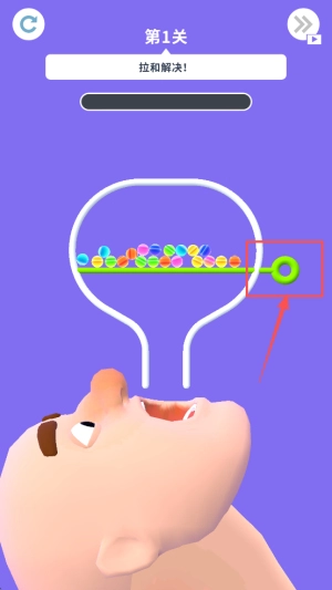 首先,进入游戏后会看到“第1关 拉和解决!”的提示,此时用手指按住屏幕上的目标物体并拖动,完成要求的动作就能顺利过关。