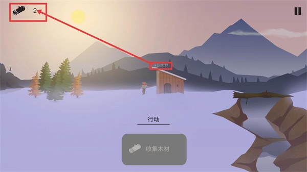 在雪地场景里,找到树木所在的区域后,点击【收集木材】按钮,就能获得生存所必需的木材资源。
