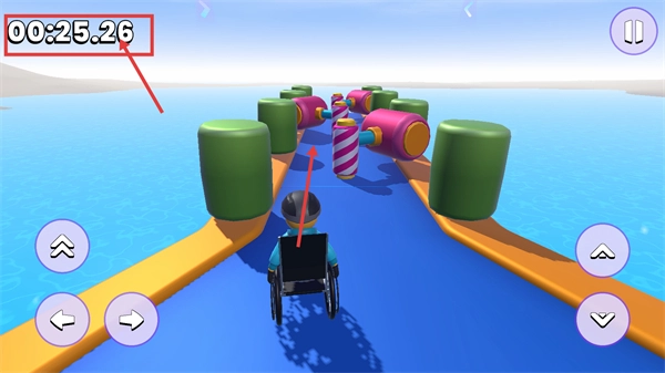 留意【剩余时间】,避开行进途中的旋转障碍物,规划好前进的路线,提高通关的效率。