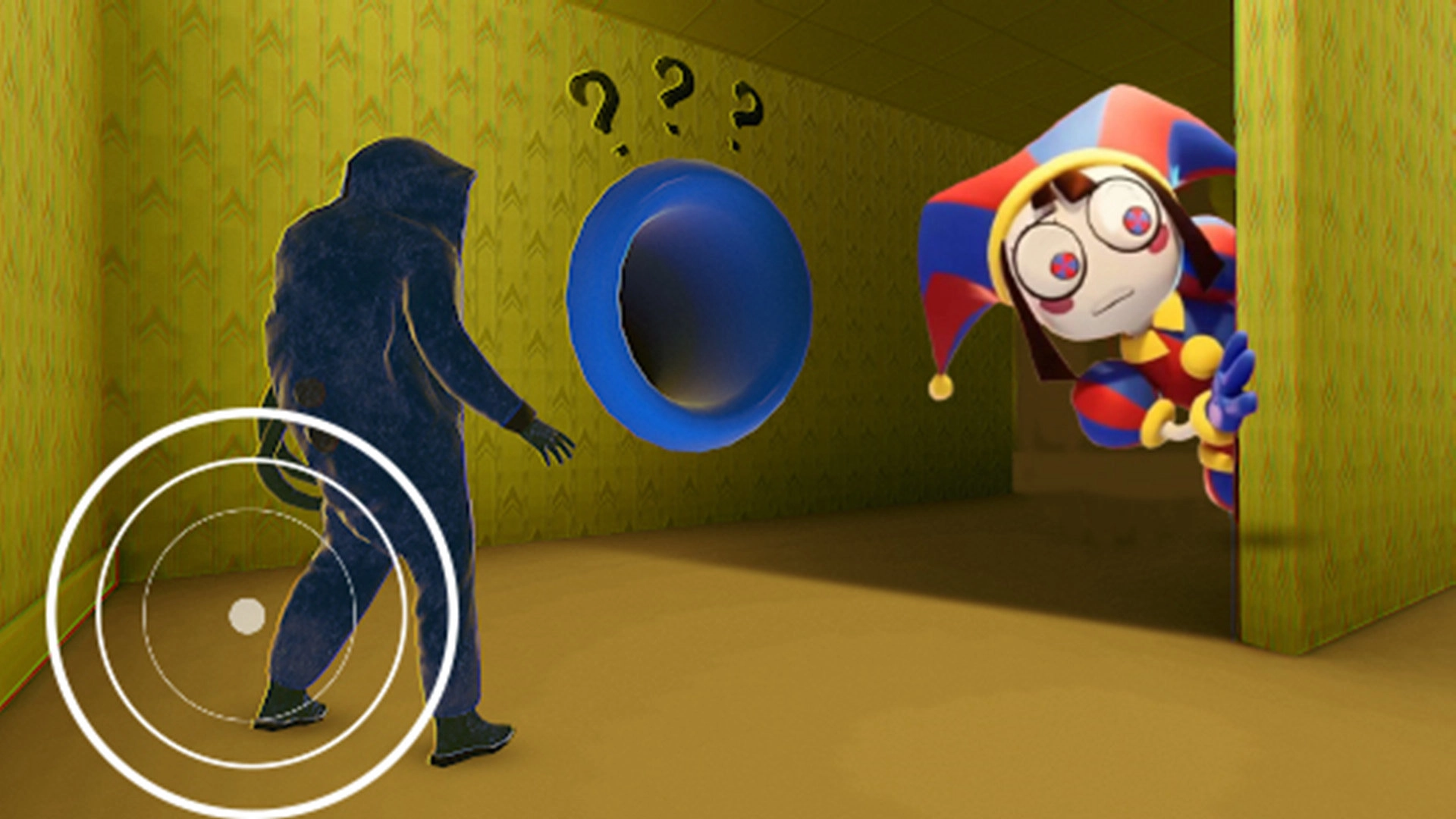 这段游戏体验紧张又刺激:玩家身处密室之中,无论移动到哪个位置,小丑都会迅速出现在身旁;此时玩家操控的角色心跳会急剧加速,以此提示恐怖小丑就在附近。