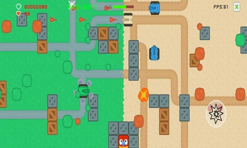 在游戏地图中,你能拾取到种类繁多、效果各异的道具,它们可以提升你的坦克的攻击力或增加血量上限。