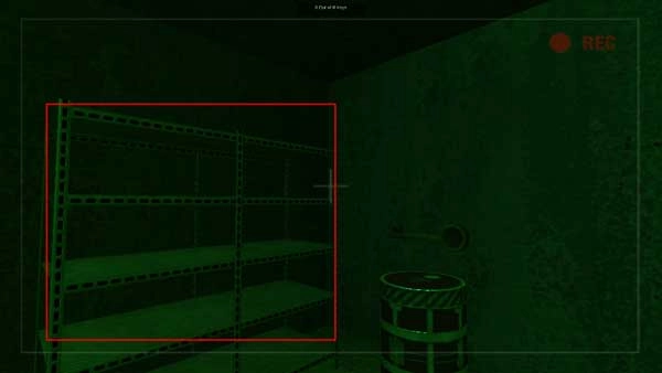 当你向前行进时遇到这类架子,要留意是否有道具;若想获取架子上的物品,只需将十字准星对准该物品就能拿到,现在点击获取桶子左上方的物品。
