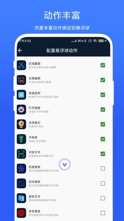 丰富动作绑定到悬浮球