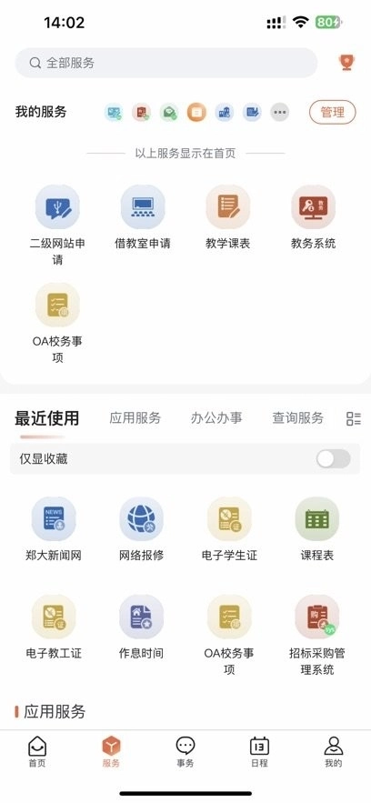 课程表、移动教务、空闲教室查询、奖惩助贷服务、就业招聘信息、学生社团等
