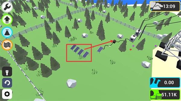销毁树木后,可在对应区域布设【太阳能板】阵列,以此拓展能量供应设施;与此同时,资源将提升至51.11K,从而强化设施的能量支撑能力。