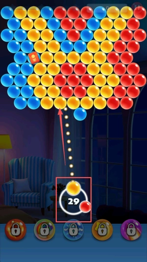 精准瞄准发射:对准空中飘浮的彩色泡泡,调整发射角度,让同色泡泡聚集后再发射,这样就能高效消除它们。