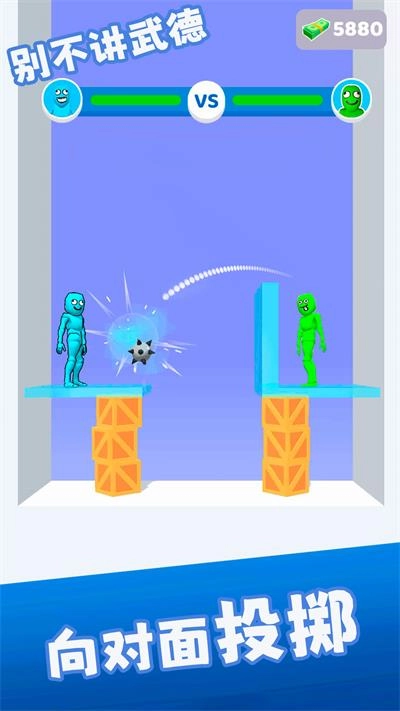借助环境展开战斗:巧妙利用环境与地形优势提升攻击效果,角色造型可爱又诙谐,在随机生成的各式场景里开展别具一格的投掷对决。