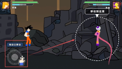 角色移动操作:借助左下角的虚拟摇杆进行推动,以此控制角色移动,使其接近敌人。