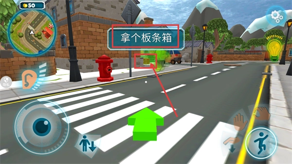 按照提示前往目标区域,完成【拿个板条箱】的收集任务,板条箱是后续场景互动的重要道具。