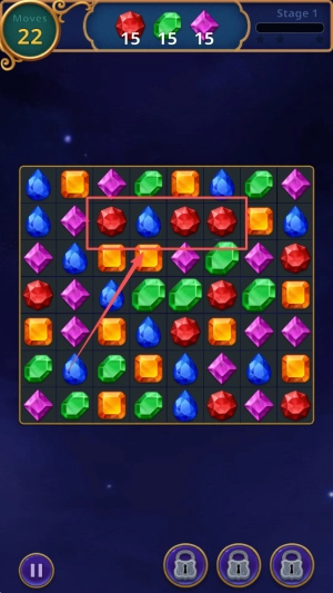 精准凑集消除:仔细观察宝石的分布布局,确定相同类型宝石的具体位置,借助滑动操作来调整它们的排列,从而形成三个或三个以上的组合,以此达成消除目标。