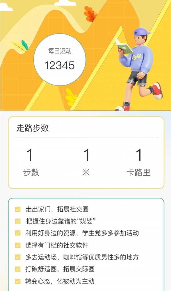 记录步数:实时跟踪用户的今日步行,记录具体步数。
