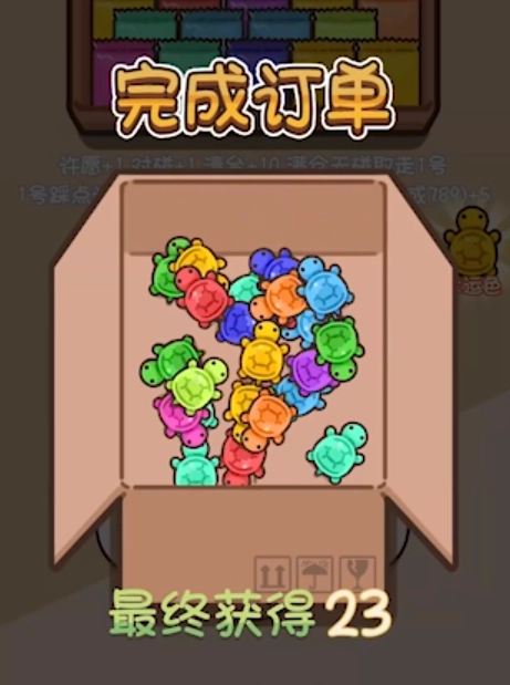直到没有相同颜色的乌龟可以进行对对碰,或者没有许愿款乌龟了,把剩下的所有包都拆完之后,里面的乌龟就是你最终获得的全部乌龟了。