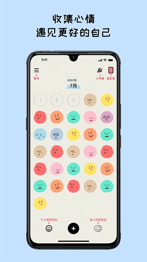 3、设置自己每一天的情绪状态,积累自己的心情。
