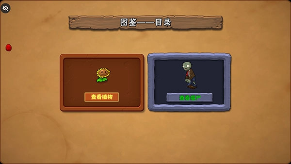也可以查看植物和僵尸的图鉴目录;