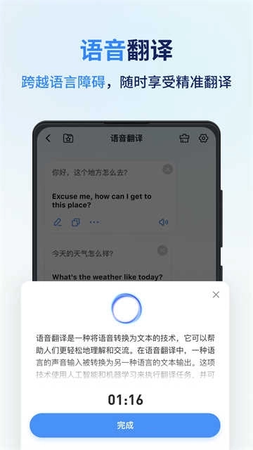 输入语音内容后,系统会进行实时语音翻译,智能将其转换成您所需的语言。