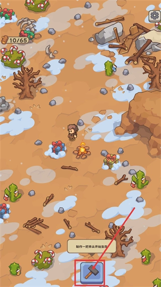 进入生存场景后,点击【斧头】按钮就能启动制作流程,它是收集木材等资源的基础工具,能帮助推进前期生存。