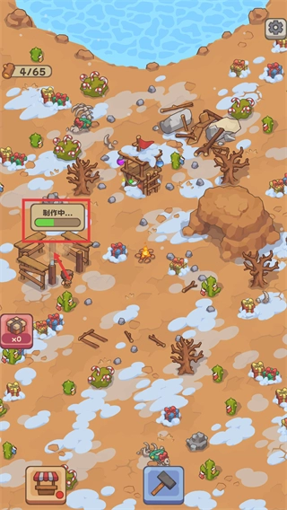 制作道具时,只需等待【制作中...】的进度条走完,就能得到成品;之后还能借助工具和建筑,进一步开拓生存所需的资源。
