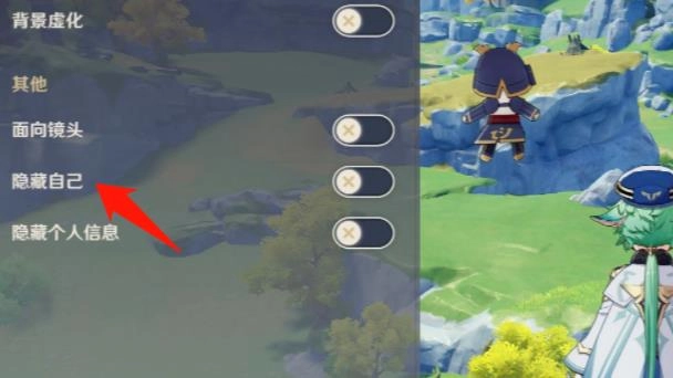 接着找到隐藏自己选项,进行点击;