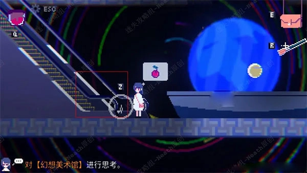 画完画后,往右边走,登上楼梯,触碰画布,获取指示信息。