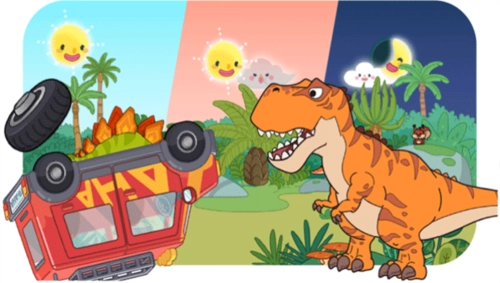 在雨林、海洋与城市里继续你的冒险之旅吧。把你发现的每样东西都拿起来,和它们互动。你可以先把恐龙送到城镇,也能点击太阳来操控天气哦!