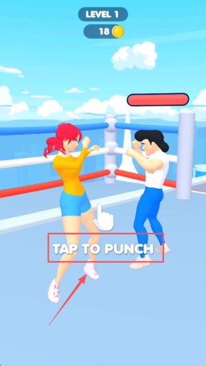 开始游戏:在擂台界面按住“DRAG TO MOVE”进行移动操作,点击“TAP TO PUNCH”出拳来击败对手。