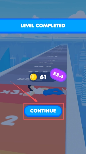 完成关卡通关:当界面出现“LEVEL COMPLETED”的提示时,点击“CONTINUE”按钮即可领取对应的奖励并进入下一个关卡。