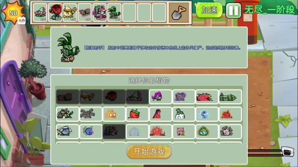 游戏的第一步依旧是挑选植物,这里的植物品类十分齐全,只是外观有了变化,可得仔细看清楚呀。