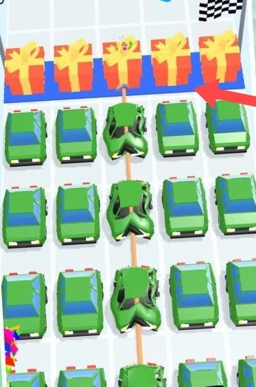 把车辆依照规则移动到目标区域,比如【礼物盒】所在的方向,完成关卡就能得到奖励。