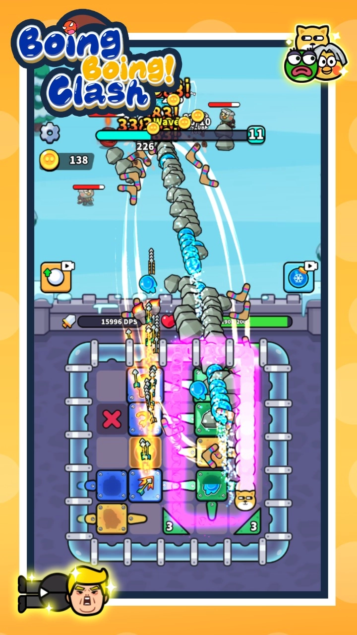 怪物会从屏幕上方分批袭来,它们的行进路线随机,属性也各不相同,玩家得实时调整防御策略,防止有怪物漏网。