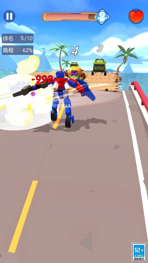 在竞速的过程里收集能量晶体,给武器系统补充能量,进而释放特殊技能来改变战局走向。