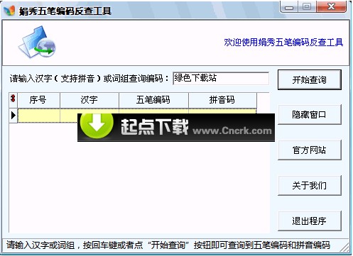 娟秀五笔编码反查工具是一款五笔编码、拼音码反查的免费应用软件。