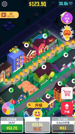 升级城市的建筑容量,解锁更多灯泡小人加入冒险。