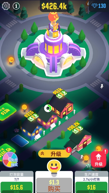 玩家能够通过升级灯泡王国获取更多小灯泡,还能建造各类建筑物来收获新的收益。