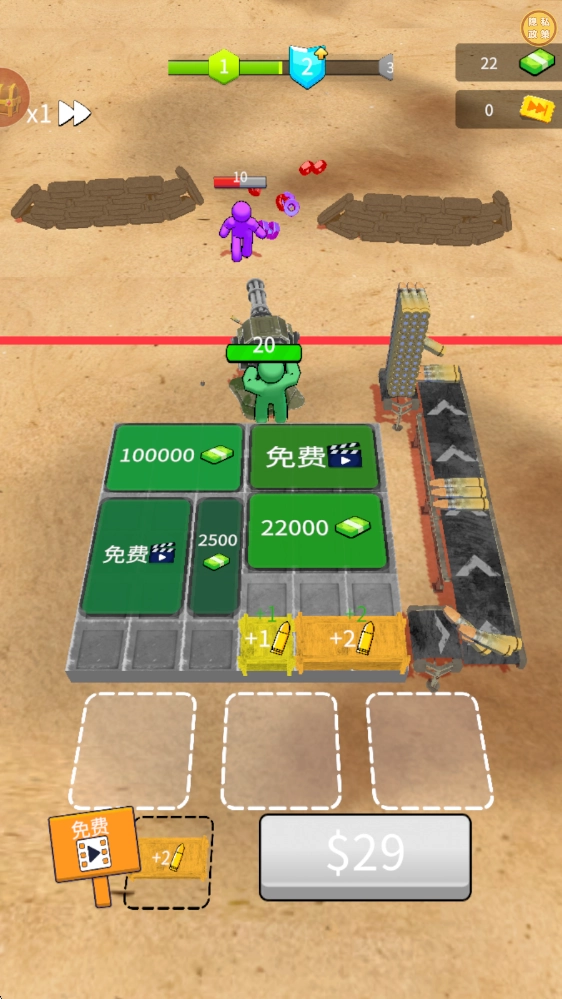 《枪火防线》是一款巧妙融合塔防策略与射击玩法的创新之作。玩家将以Q萌橡皮人指挥官的身份,迎击如潮水般不断袭来的敌军。在这个色彩缤纷的橡皮人世界中,你需要凭借智慧布置防御设施、升级强力武器,率领橡皮人小队抵挡一波又一波敌人的进攻。游戏搭载独特的物理弹道系统,每一颗子弹都能触发真实的碰撞反馈,让防守战斗充满了不确定性与趣味性。从简易木箱到钢铁堡垒,从手枪到加特林,随着关卡的逐步解锁,你将构建出专属于自己的终极防线!准备好投身这场橡皮人世界的攻防对决了吗?