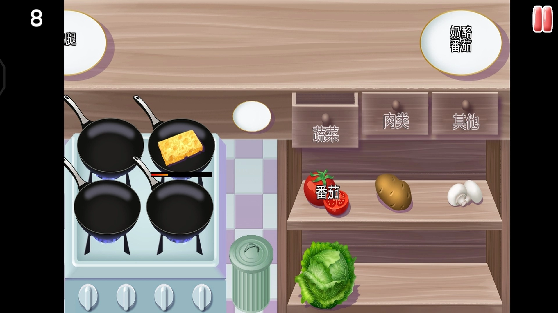 经典模式下不用慌,先快速浏览订单需求,锁定关键食材——比如需要魔法森林食材时,优先抓取西兰花和蘑菇,这样能节省找食材的时间。