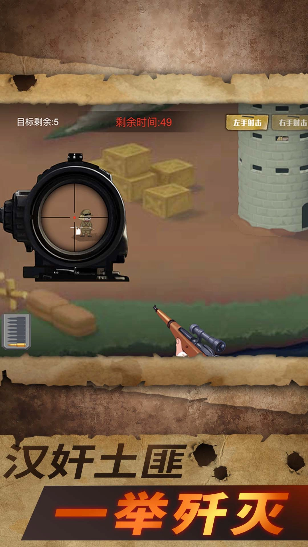 3. 这是一款紧张刺激的射击枪战游戏,玩家依靠精准的狙击技术与灵活的手指操作进行射击,遭遇大量敌人时还能投掷手榴弹。游戏画面制作精良,能带来极为逼真的射击体验,仿佛让你亲身处于残酷的战场之中。
