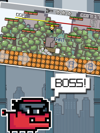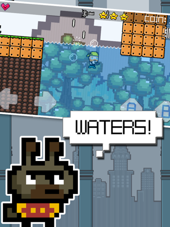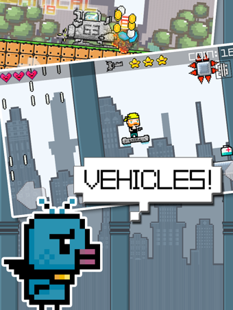 操作其实和同类横版闯关作品没什么两样,左下角为方向按键,右下角则是跳跃和射击,如此看来,本作更像是沿用了大恐龙(Ravenous Games)旗下作品《随机英雄》(Random Heroes)的玩法套路,当然就场景的设定来讲,《传奇的卡里》要更为洒脱一些,毕竟制作成本要比《随机英雄》小的多。