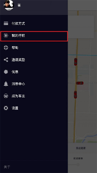 1. 打开优步Uber打车应用程序,进入个人中心页面,寻找到“我的行程”并点击。