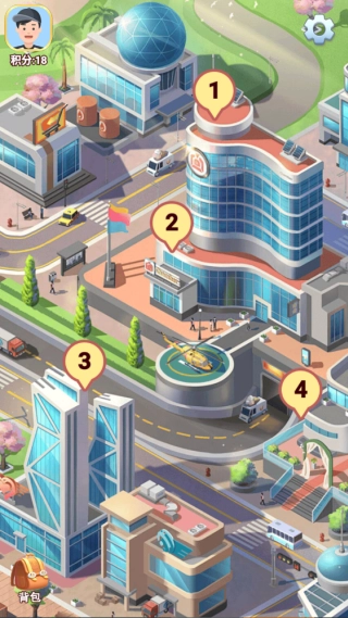 打开游戏后,主界面设有四个难度各异的关卡(以城市地址命名),每个关卡里玩偶的大小和数量都不相同,第四关的玩偶更是处于移动状态,不同难度的关卡在这些方面各有特点。