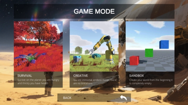 这款游戏提供三种可游玩的模式,即生存模式、建造模式与沙盒模式。