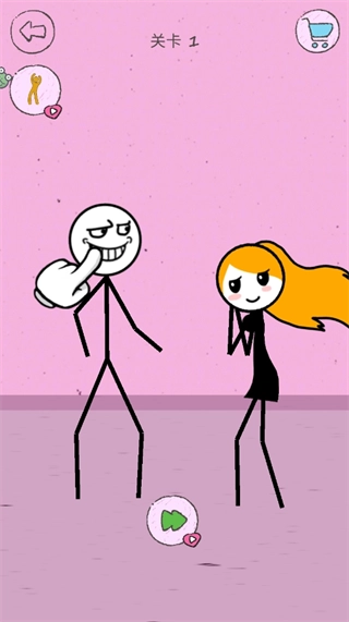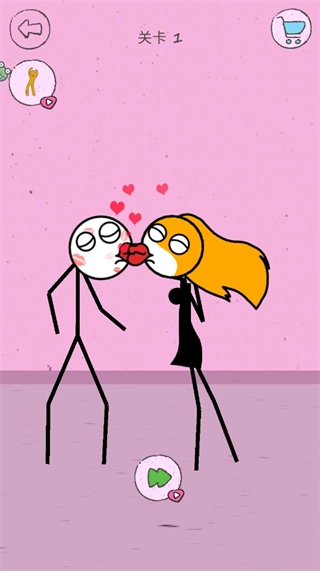 只要想办法让两个火柴人角色亲吻到一起,就能顺利过关啦。