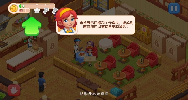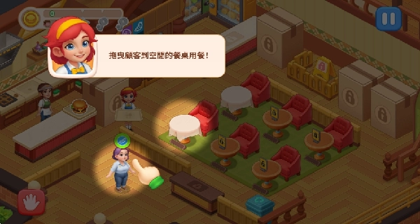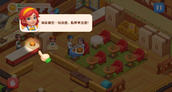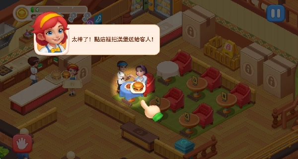 打开游戏进入首页就能开启体验,把顾客拖到餐桌旁就可以让他们开始用餐啦。