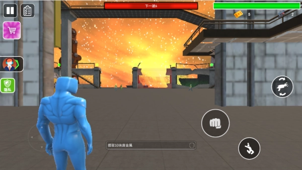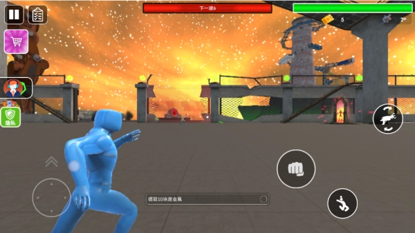 左下角的虚拟摇杆用于控制前进方向,右下角的按钮则负责控制攻击与跳跃。