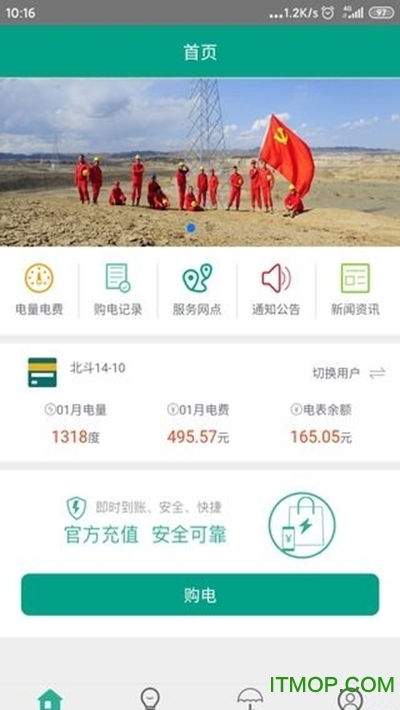 支付购电:使用银联支付途径在手机上进行购电操作,并且能够为他人代缴费用。